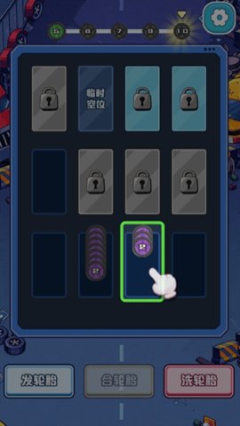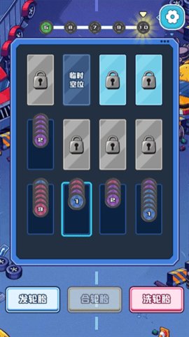 3、游戏中还设有轮胎不够时可点击发轮胎补充,格子满时点击合成轮胎即可消除一格的规则。