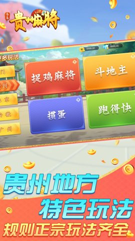 2、尚尚贵州麻将遵循贵州规则,玩法正宗,包含捉鸡麻将、掼蛋、斗地主等全国火热的贵州麻将玩法。