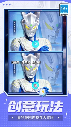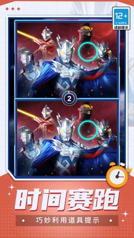1、在奥特曼大集结中,玩家需要运用火眼金睛般的观察力,立即发现图片中的不同之处。