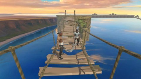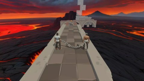 1、玩家可以拉扯链子,将队友拉过来与自己一起跳跃、滑动,或者合作解决各种难题。