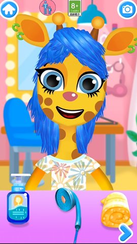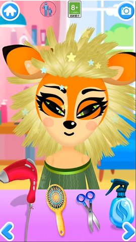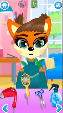 1、在这款儿童理发每个孩子都可以扮演一名发型设计师,为可爱的动物们设计独特的发型。