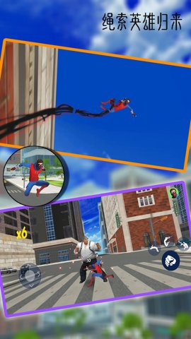 4、绳索英雄归来是一款充满创意和乐趣的格斗游戏,让玩家们在游戏中扮演蜘蛛侠,体验超级英雄的刺激与冒险。