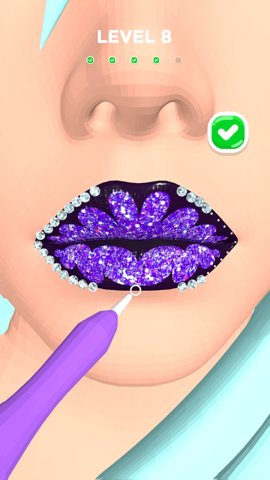 时尚盛宴赛是一款极具创意的益智游戏,让玩家们体验成为口红艺术家和唇彩化妆专家的乐趣。在这个玩家可以通过设计各种抽象唇彩和心形唇彩来展示自己的创意和审美。游戏中还提供修剪器工具,帮助玩家去除嘴唇上的死皮,修复裂缝,让双唇更加柔软光滑。