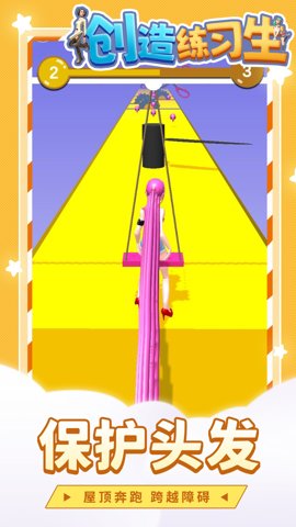 创造练习生是一款刺激跑酷游戏,玩家需要在游戏中控制练习生在赛道中奔跑,同时收集适合自己的秀发。玩家需要躲避那些觊觎练习生秀发并想毁掉她的秀发的障碍物,保护练习生的美丽秀发。玩家需要灵活应对各种障碍,保持高速奔跑,才能顺利通过关卡。