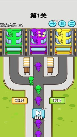 1、玩家需要提前观察车辆的颜色和装载人数,然后合理安排车辆的行驶路线,让小人们按照对应颜色的车辆上车。