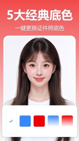 1、美妙证件照相机还提供了一键换底的功能,用户可以选择多种经典底色,快速方便地制作出符合要求的证件照片。