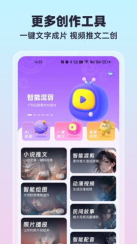 2、作为一款集AI绘图、AI视频制作、AI写作以及日常信息查询等多功能于一体的智能应用,闪映能够帮助用户轻松实现各种创意想法,无论是绘画、写作还是视频制作,都能在短内创作出优质作品。