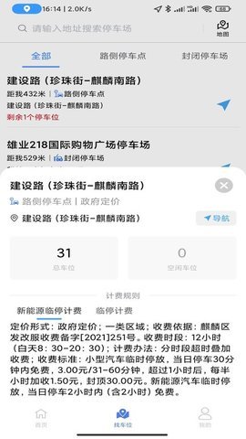 2、用户可以快速查询目的地附近停车场及导航功能,支持在线购买停车月卡,让停车更加便捷。