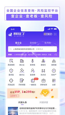 阿拉丁是通过上海问道云人工智能科技有限公司开发并运营的阿拉丁-企业风控专家平台,为企事业单位、机关尤其是政法系统、金融行业、广大企业以及相关人士提供全面、准确、高效的企业信息查询服务。该平台全方位分析评估、预警防范、处置化解各类风险,为企业和经济的高质量发展提供有力支持。