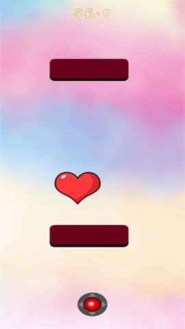3、在闯关的过程中,玩家可以让爱心掉落时接住并反弹上下,每接住一个来回就可以获得一分闯关的分数。