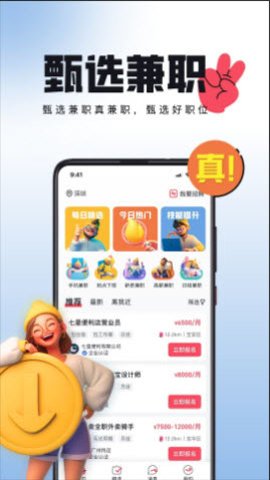 1、甄选兼职是一款功能全面、操作简便、真实可靠的兼职找工作软件。