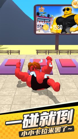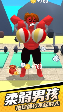 3、玩家需要通过模拟健身来提高自己的臂力、腿力和腰力等级,挑战游戏内置的关卡,完成任务获得金币,快速提升自身能力。