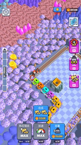 矿工行动是一款富有挑战性和趣味性的益智游戏,让玩家体验成为火车帝国的主人,打造属于自己的列车帝国。在这个玩家需要砍伐树木,清理土地,收集各种资源,通过铺设复杂的铁路轨道,连接遥远的土地,合并不同的铁路车厢来提高列车的功能和美观性。 玩家将面临动态列车构建、资源管理、车厢合并、膨胀铁路、持续进步等多重挑战。