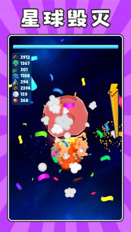 爆破沙盒模拟3是一款益智游戏,同时也是一款休闲向太空经营游戏。玩家在游戏中可以在泰拉粉碎中塑造世界的命运。游戏中的玩家需要引导流星穿越太空,消灭地球和其他行星,同时收集各种资源。