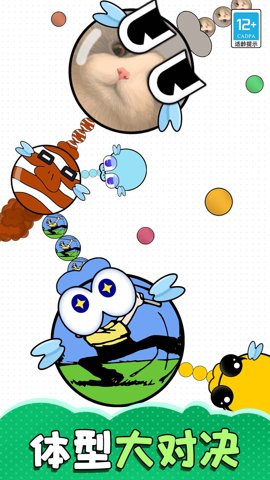 1、玩家将扮演一个小小的角色,不断吸食周围的食物来增长自己的体积,同时要小心避开其他玩家,以免被吃掉。