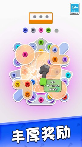 一起钉钉钉是一款极具挑战性和创意的解谜游戏。玩家进入游戏后,将会被各种不同颜色的盒子和钉子所吸引。游戏的玩法非常简单,只需要根据屏幕上方显示的彩色盒子颜色,点击对应颜色的钉子,将它们一个个拆下并收纳进盒子中。