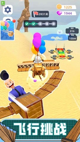 断桥飞车是一款极具创意和挑战性的益智游戏。在这个玩家可以尽情发挥自己的想象力,设计并创造出各种飞行神器。不论是基于现有科技的飞行装备,还是纯粹的天马行空之想,只要能够让玩家翱翔于天际,就可以算是成功的杰作。