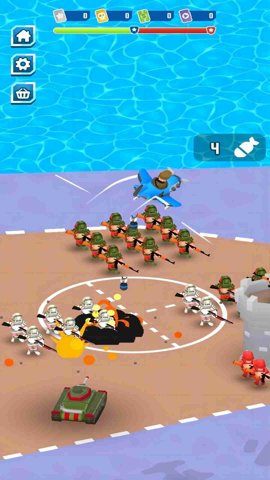 1、玩家需要在卡通风格的虚拟世界中指挥部队进行战斗,通过收集资源、招募士兵、利用飞机导弹等方式来打倒敌人,提升自己的实力。