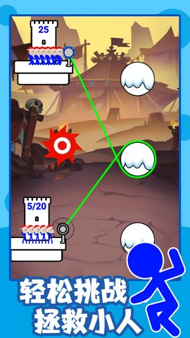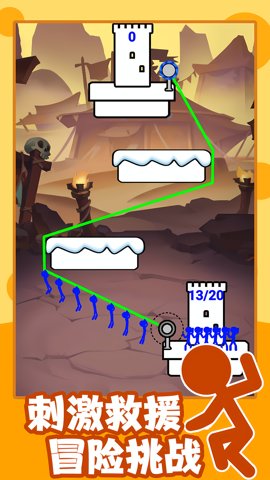 最强超人是一款极具挑战性和刺激性的益智游戏。在这个玩家将扮演一位超级英雄,需要解救起点处被困的人物,将他们安全送到终点处。游戏的玩法非常简单,只需要在起点和终点之间画一根连接的线即可,但是要避开各种障碍物和陷阱,确保被困的人能够平安脱险。
