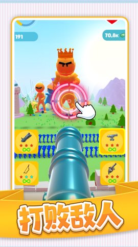 一起来弹射是一款融合了飞行射击和塔防策略元素的游戏,给玩家带来了全新的游戏体验。玩家需要不断提升自己的操作技巧,利用各种武器和道具来打败对手,取得胜利。玩家可以通过使用武器和道具的特效来有效地干扰敌人的进攻,保持耐心,并守卫自己的城堡。