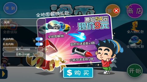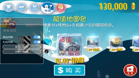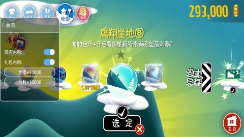 1、商店内购、金币加1w、礼包内购、分数加1w等功能可以让玩家更加轻松地获得游戏中的资源和道具。