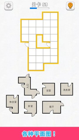 全民脑洞闯关是一款益智游戏,玩家需要通过解开各种谜题来完成房子的布局。游戏中如果遇到困难,可以暂时休息一下,让大脑得到放松再尝试。将门组合起来,使它们很好地重叠整理被肢解的平面图部分,这样就能完成房子的布局。