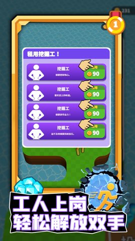 2、当你积累到一定的财富时,你可以雇用更多的黄金挖掘工,进一步扩大你的开采大业。