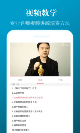 葫芦丝是一款中国乐器应用,提供快速入门和视频教学。用户可以通过葫芦丝APP与专业老师进行沟通,及时获得古筝老师的视频回答。这款APP也为广大音乐爱好者提供了一个交流学习的平台,让学习音乐不再枯燥。葫芦丝APP由国内知名音乐品牌音约吧团队出品,是一款专为葫芦丝入门而设计的APP。