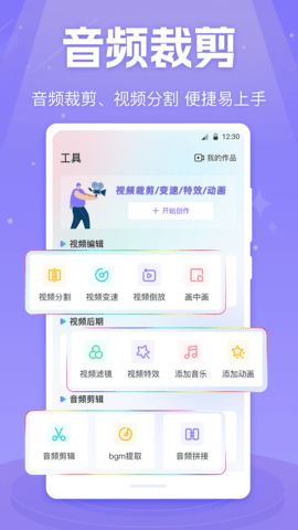 这款应用还具备视频风格功能,让用户可以轻松编辑和制作个性化的视频内容。用户可以对多个视频片段进行风格、变速、倒放等操作,创造出令人惊艳的影片。用户还可以为视频添加滤镜、音乐和特效,增添趣味且独特的风格。这款应用集影音播放器、视频分割和音频裁剪于一身,是一款多功能工具,为用户提供便捷的娱乐和创作体验。