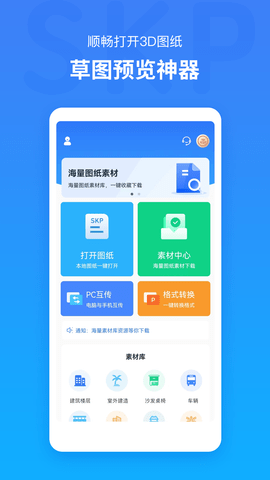 草图大师SKP是一款功能强大的图片美化应用,不仅仅是一款美化工具,更是一个为广大设计师、美术工作者、学者、学生、老师、工程制图人员、工程师及相关从业者提供模型素材下载功能的平台。在素材库模块中,用户可以找到各种各样的模型素材,不仅可以直接下载使用,还可以拓展用户的视野,为他们的创作提供更多灵感和可能性。