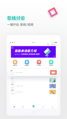 课桌是一款功能强大的在线互动平台,能够帮助用户快速开启讨论和录制课程内容。不需要复杂的设置,只需一键即可创建讨论,分享课程码,让参与者直接加入讨论。用户可以随时上传各种格式的文件,如PPT、Word、Excel、PDF、jpg等,支持多个资料的组合式教学。用户还可以在文件上进行书写,使用起来更加方便。