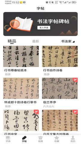 这款应用的优势在于其丰富的字库和碑帖资源,用户可以根据自己的需求选择不同的字体和风格进行学习。无论是初学者还是有一定基础的书法爱好者,都可以在这里找到适合自己的练习素材。这款应用还提供了书法字帖的书写示范和教学视频,帮助用户更好地理解书法技巧和规范。