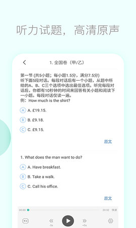 高考英语听力还提供了100套高考模拟试题,试题类型和难度与真实高考相似,帮助考生熟悉考试形式和提前适应考试压力。应用中还收录了历年全国各地高考听力真题,让学生能够进行实战演练,更好地了解考试要求和考点。