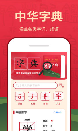 字典词典大全是一款功能丰富、实用性强、适用范围广泛的大型字典类APP。它不仅收录了近6万汉字及成语,还包含了新华字典、成语词典等工具书内容。在字典词典大全中,用户可以通过汉字听写功能来提高自己的听写能力,还能听到常用字的真人发音,帮助用户更快地学习读音。