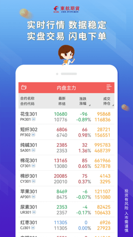 东航期货的APP提供实时行情,覆盖各种期货品种,由东航期货自主开发,专注为期货投资者打造一款专业、安全、可靠的期货开户行情交易软件。用户可以足不出户在线办理个人业务,直连人工客服,实时响应用户的需求。东航期货还提供线上办理业务,让用户能够更加便捷高效地进行操作。