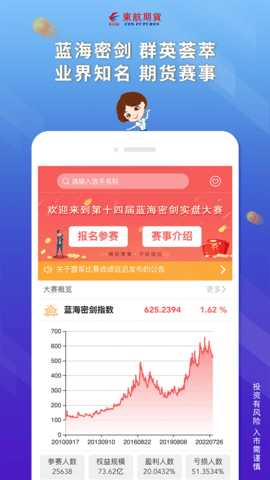 东航期货直连国内各大期货交易所,免费提供上期所、郑商所的深度行情。作为蓝海密剑实盘大赛的举办方,东航期货已经成功举办了十余年的比赛,吸引了大量期货投资者的关注和参与。