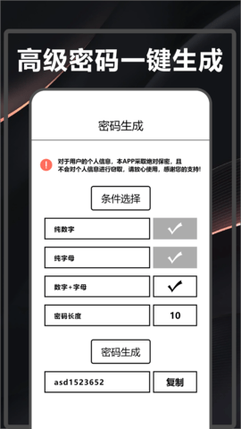 这款应用的操作非常方便简单,用户只需轻轻一键即可生成高级密码,无需费时费力地手动输入。用户还可以利用这款应用一键管理各种账号密码,确保账号密码的安全性和保护性。这种一站式的密码管理功能,让用户不再需要担心忘记密码或者账号泄露的问题。