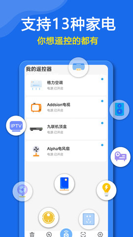 手机万能遥控器是一款功能强大的遥控器应用,它不仅可以帮助用户控制家中的各种电器设备,还能让用户通过手机实现一机控制所有家电的便利。这款遥控器应用拥有庞大的码库,支持超过1000种家电设备的遥控功能,不断更新码库,确保用户能够轻松找到自己家中电器设备的对应码。用户只需简单匹配,就可以方便地控制各种品牌的家电,包括主流品牌的空调等。