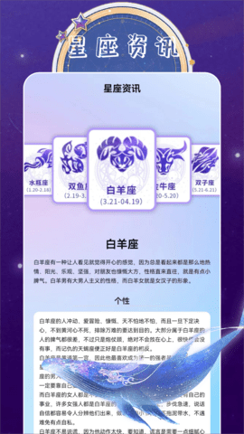 准星是一款功能强大的工具应用,它不仅是一款星座内容介绍,更是一款帮助用户快速了解星座人群的个性特点、感情描述、性格优缺点等详细信息的应用。通过准星,用户可以轻松地查看不同星座的特点,从而更好地了解自己和他人。
