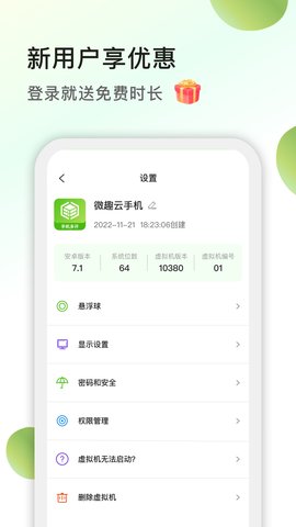 微趣云手机还具有多开分身大师的功能,无论用户身处何时何地,都可以轻松进行游戏或应用的多开操作,只需简单的一键操作即可解放双手。这款智能安卓虚拟机可以全天候在线并支持多开分身,用户可以24小时后台运行应用,通过安卓云手机下载各种安卓应用APP,成为手机的双开助手。智能息屏托管挂机功能让用户可以持续在线,而应用加密和密码锁保护则可以更加彻底地保护用户隐私。