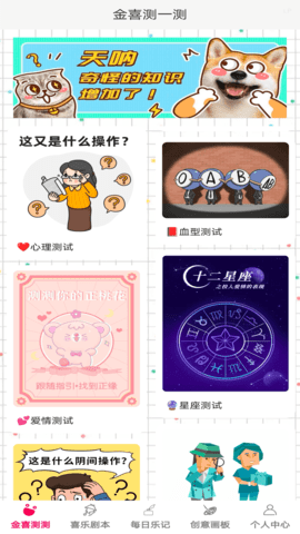 金喜乐翻天是一款专为繁忙生活节奏中寻找乐趣和自我发现的休闲解压应用。无论您是想要放松心情,还是寻找一些娱乐和个人成长的机会,金喜乐翻天都能满足您的需求。这款应用包含了多样化的金喜测试,如性格分析、星座运势和趣味挑战等,帮助您深入探索自我,了解更多关于自己的内心世界。
