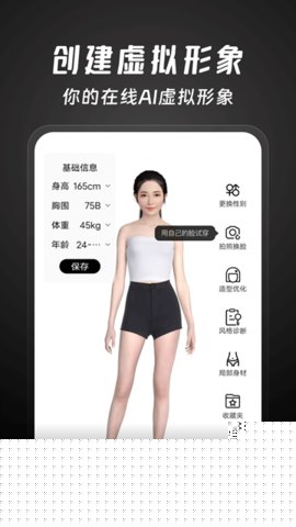 虚拟形象个性化定制:用户可通过上传照片结合手动微调,或完全手动设置的方式,精细定义虚拟模特的面部特征、肤色、发型、身高、体型乃至身姿比例,打造出与自身高度吻合或理想化的数字分身,作为所有搭配尝试的基石。