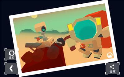 极简主义的美学表达:游戏采用低多边形(Low-Poly)艺术风格,用简洁的几何块面和温和的色调渲染出火星的荒漠、峡谷与陨石坑。这种风格不仅降低了视觉冗余,突出了地形结构和空间关系,更营造出一种超越现实、近乎抽象的宁静与孤独感,与探索太空的主题完美契合,形成了强烈的视觉记忆点。