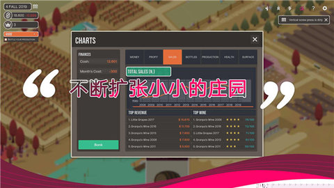 长期战略与酒庄发展。随着资金和声望的积累,玩家可以扩大葡萄园面积,引进新的珍贵品种,升级酿酒设备(如更精准的温控系统、更高效的压榨机),甚至开设访客中心举办酒庄旅游。游戏的终极目标是建立一座享誉世界的顶级酒庄。你需要平衡短期现金流与长期投资,在坚持自家风格与迎合市场潮流之间做出抉择,不断优化从生产到销售的每一个环节,最终让你的酒庄名字成为品质与品味的象征。