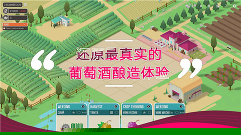 酿造物语中文版是一款由意大利独立游戏团队Broken Arms Games开发的葡萄酒酿造模拟经营手游。在这款玩家将扮演一位酒庄庄主,从零开始,亲历从葡萄藤栽种到美酒装瓶上市的全过程。游戏的核心在于对酿酒科学的高度还原与策略性经营,你需要综合考虑土壤成分、气候变迁、葡萄品种特性以及酿造工艺中的无数细节,每一个微小的决策都将直接影响到最终成酒的酸度、甜度、单宁与酒体结构,从而塑造出独一无二的风味。你的目标不仅是酿造出好酒,更要建立自己的品牌,通过参加品鉴会、国际大赛,与经销商谈判,将你的葡萄酒推向世界,最终在葡萄酒的殿堂中赢得至高声誉,成就一段从田园到殿堂的传奇。